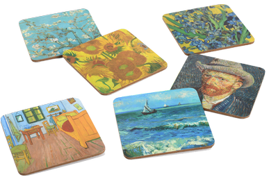 A selection of masterpieces from the Van Gogh Museum collection has inspired a range of items, including mint tins, coasters, magnets, keyrings and storage tins filled with chocolate or stroopwafels.