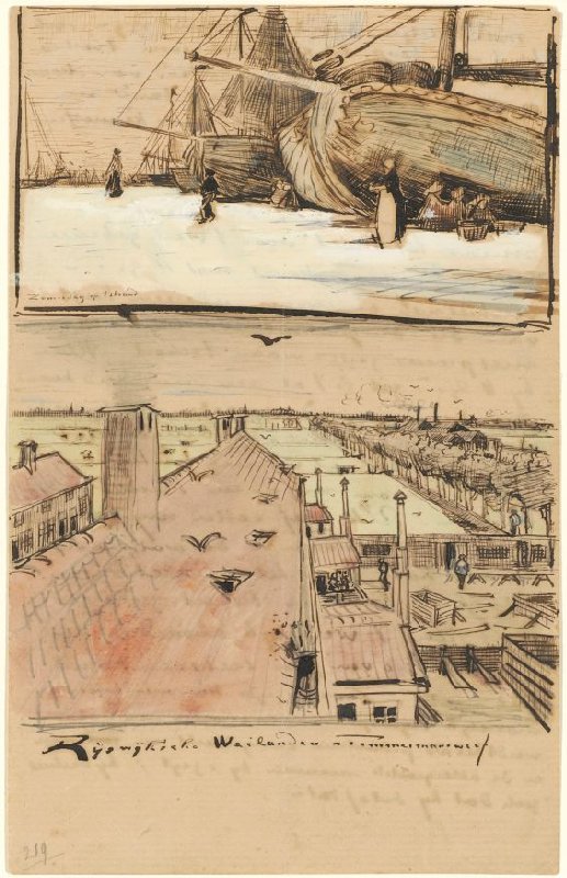 Sheet 2 of a letter from Vincent van Gogh to Theo van Gogh with sketches of Fishing Boats on the Beach and Rooftops (recto)