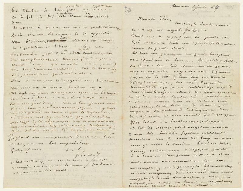 Letter from Vincent van Gogh to Theo van Gogh (recto)