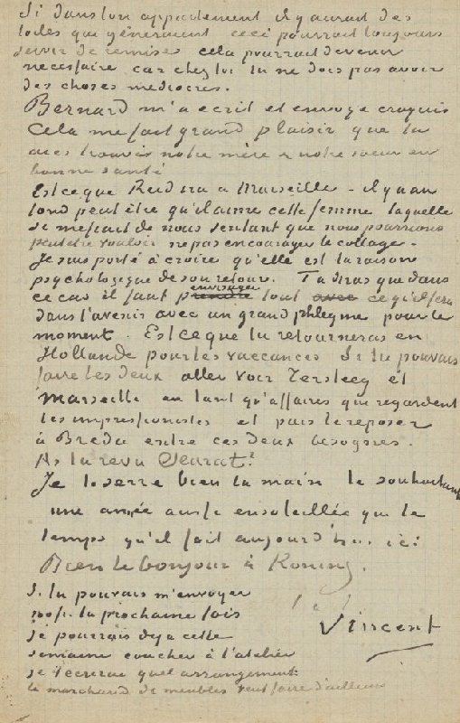 Sheet 2 of a letter from Vincent van Gogh to Theo van Gogh with sketch of The Yellow House (recto)