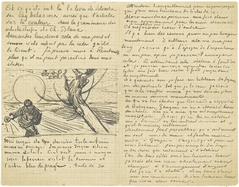 Letter from Vincent van Gogh to Theo van Gogh with sketch of Sower with Setting Sun (verso)