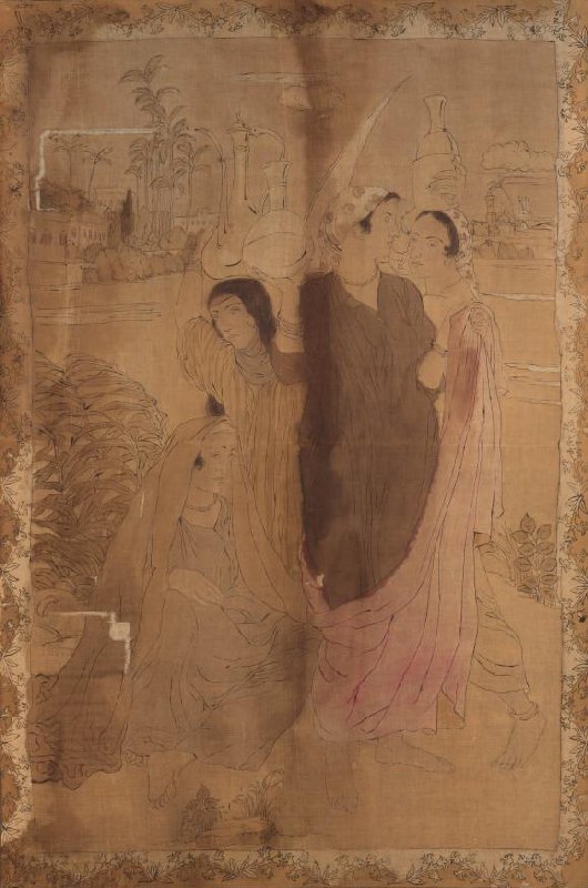 ink and distemper on canvas, trimmed with gold, 198.2 cm x 132 cm