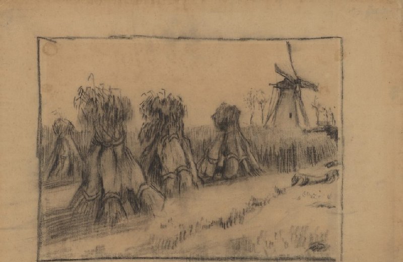 Wheatfield with Stooks and a Mill