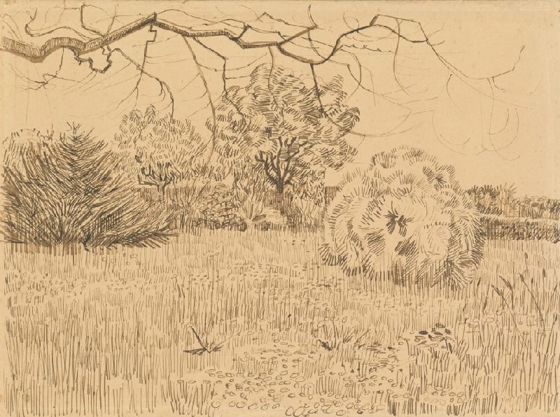 In the spring of 1888, Van Gogh spent a lot of time drawing. He was then living in the southern French city of Arles. He made this drawing in the park in front of the Yellow House, where he became a tenant on 1 May. He used a thin pen for the grass and a thicker one for the shrubs. The direction of the pen strokes also differs for each type of vegetation. This gives each one its own distinct character.