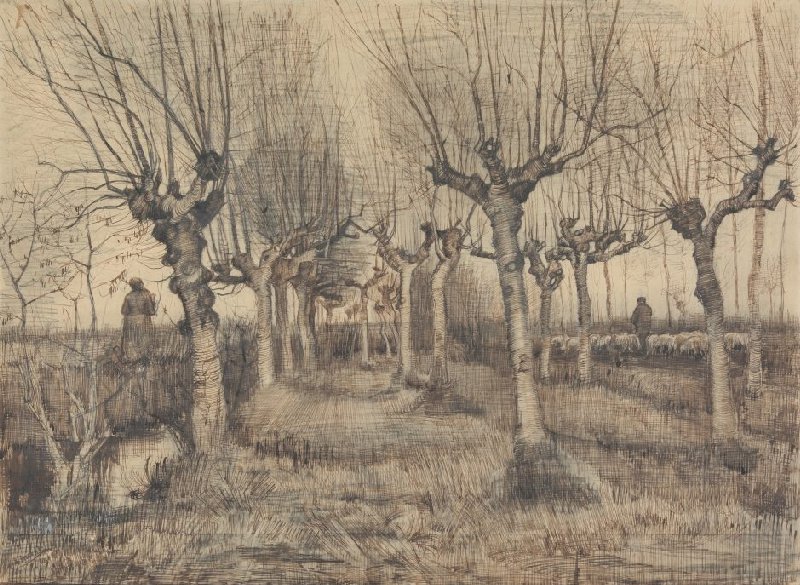 Van Gogh loved pollard trees with their gnarled trunks. They feature prominently in many of his paintings and drawings, including this one. In a letter to his brother Theo, he compared a row of pollard trees to a 'procession of orphan men'. What he meant was that nature had a soul of its own.