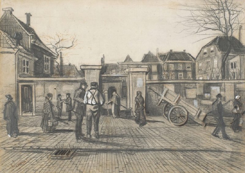 - Commissioned by the artist and sold to his uncle Cor van Gogh, Amsterdam for NLG 2,50, March 1882; 13-15 May 1902 sale The Hague, Nijhoff en De Vries (Catalogue d'une belle collection d'eaux-fortes modernes, gravures anciennes, dessin anciens [...]), lot 434 (Entrée du Mont de piété à La Haye), remained unsold; C. 't Lam, after 1902; after his death inherited by his son A. 't Lam; after his death in 1975 inherited by his son C. 't Lam, Rijswijk; sold by C. 't Lam to the de Vincent van Gogh Foundation, Amsterdam. August 1975; on permanent loan to the Rijksmuseum Vincent van Gogh and at the Van Gogh Museum, Amsterdam, since 1 July 1994.