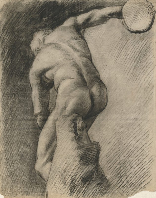 This drawing by Van Gogh shows a plaster model of Myron's Discus Thrower, a famous sculpture from the ancient world. He drew it at the Antwerp art academy.