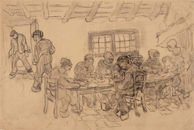 Vincent had just come out of a severe crisis when he made this drawing. In a letter, he asked his brother Theo to send him his earlier sketches. The new version of The Potato Eaters was never painted.