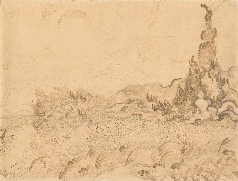 This is one of ten drawings after paintings of his own that Vincent made in the summer of 1889. He sent the drawings to his brother Theo. They offered an impression of how he was spending his time in the asylum in Saint-Rémy. Theo was very impressed with some of them but also wrote, 'The latest drawings look like they've been done in a fury.' This was one of those drawings.