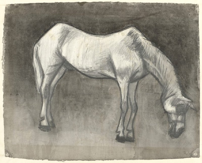 - Probably left by the artist with his mother, A.C. van Gogh-Carbentus, Nuenen/Breda, sometime between November 1885 and February 1886; given in safekeeping to Janus Schrauwen, Breda, April 1888; left with Janus Schrauwen by A.C. van Gogh-Carbentus after her move to Leiden, 1889; sold by Janus Schrauwen to Jan C. Couvreur, 14 August 1902; sold by Jan C. Couvreur to Kees Mouwen Jr and Willem van Bakel, Breda, 1902-03; given on consignment by Kees Mouwen Jr and Willem van Bakel to Kunstzalen Oldenzeel, Rotterdam; probably sold by Kunstzalen Oldenzeel to S.R. Steinmetz, Amsterdam, c. 1911; after his death on 5 December 1940 inherited by his son R.T. Steinmetz, The Hague; after his death in 1979 inherited by his widow; sale 27 March 1985 London, Sotheby's (Impressionist and modern drawings and watercolours), lot 303 (Le cheval blanc), remained unsold; given in consignment by the widow Steinmetz to Kunsthandel Monet, Amsterdam; sold by Kunsthandel Monet to the Vincent van Gogh Foundation, April 1986, on loan to the Rijksmuseum Vincent van Gogh and at the Van Gogh Museum, Amsterdam, since 1 July 1994.