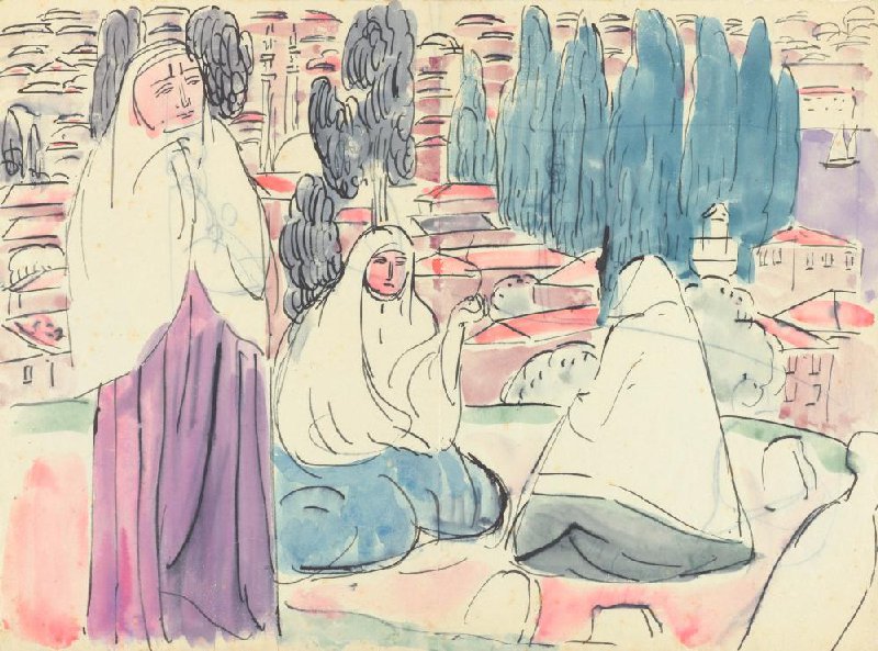 pen and ink and watercolour on paper, 29.9 cm x 40.5 cm