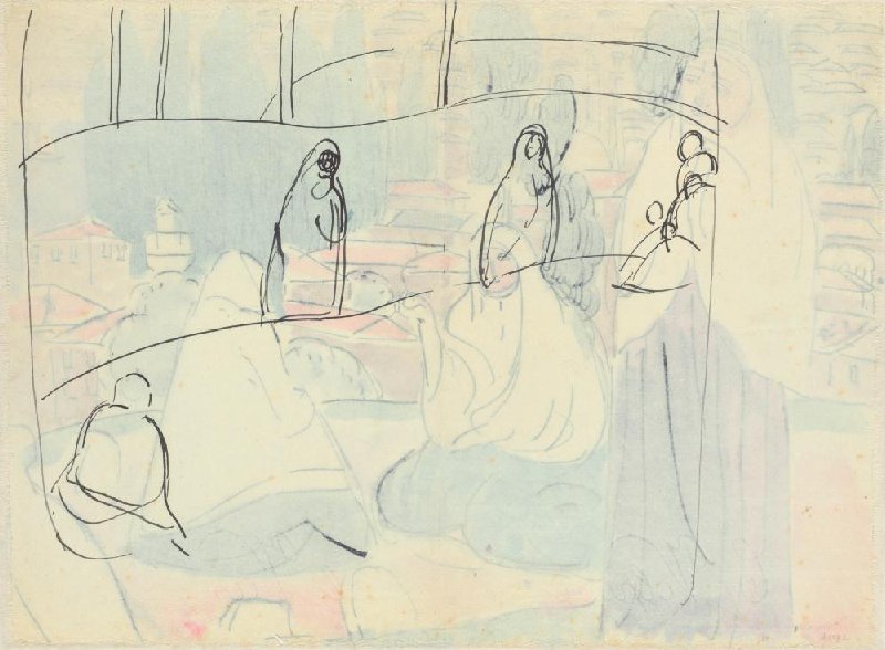 Sketch of Three Female Figures in a Landscape