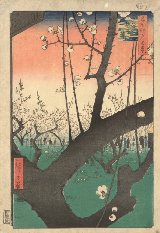The Residence with Plum Trees at Kameido, from the series One Hundred Views of Famous Places in Edo