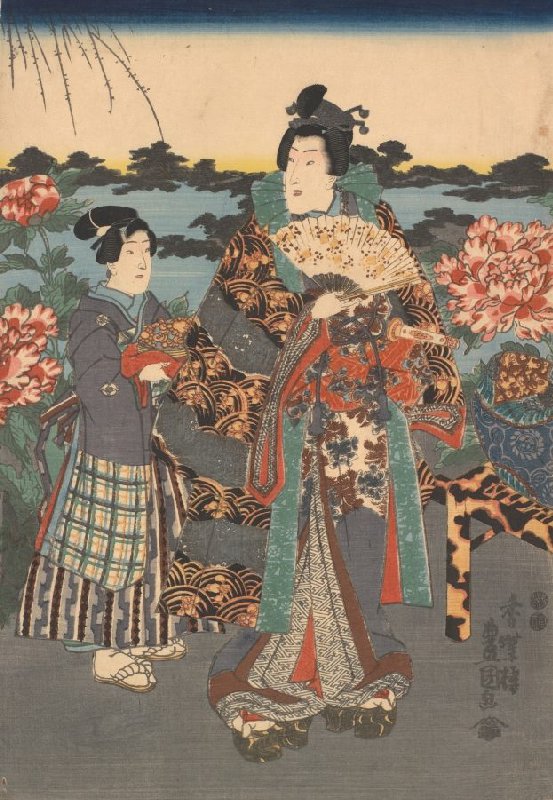 Rustic Genji and Boy Attendant, middle sheet of the triptych Admiring the Peony Garden