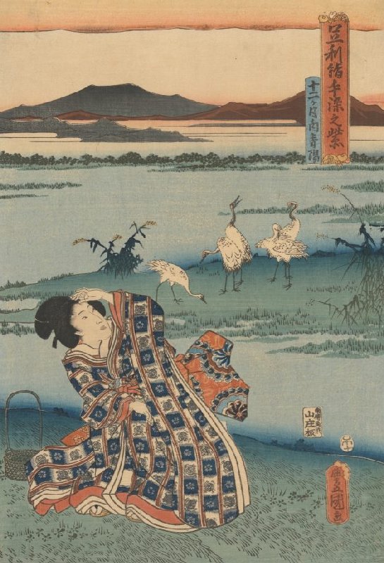 Girl Gathering Herbs, right sheet of the triptych First Month from the series Purple Hand-Dyed Ashikaga Silk: The Twelve Months