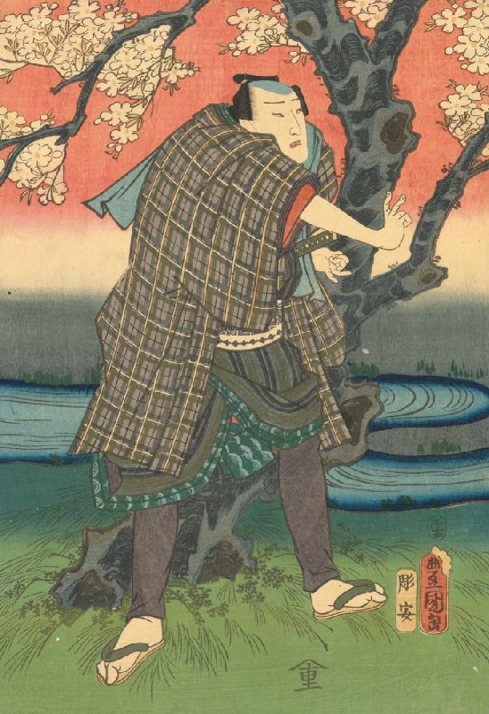 Actor Standing Under a Cherry Tree, second sheet of the pentaptych Favourites All Together in Full Flower