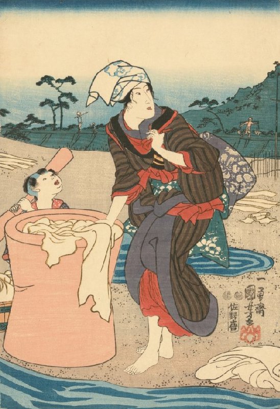 Woman and Child with Wash Tub, central sheet of the triptych The Crystal River of Chōfu in Musashi Province, from an untitled series of the Six Crystal Rivers