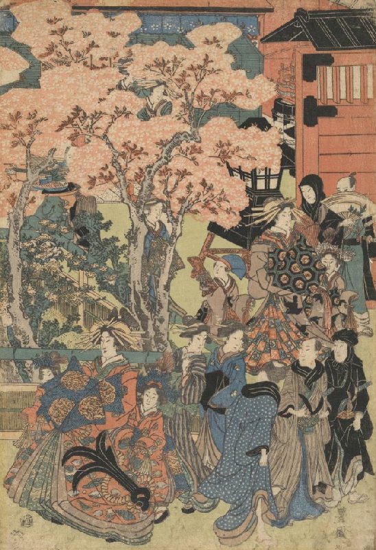 The Cherry Blossom Scenery in Shin'yoshiwara, central sheet of a triptych