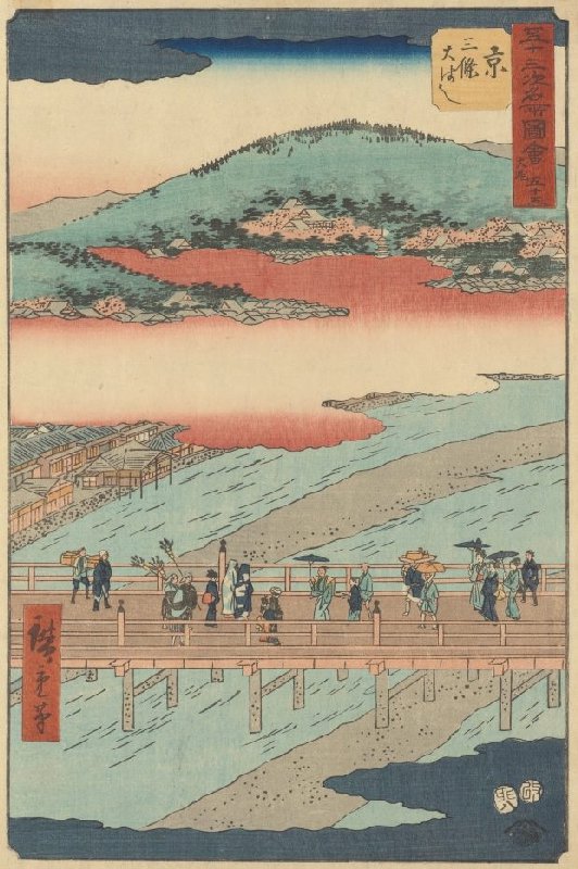 Miyako: The Great Bridge at Sanjō, the End, no. 55 from the series Collection of Illustrations of Famous Places near the Fifty-Three Stations [Along the Tōkaidō]