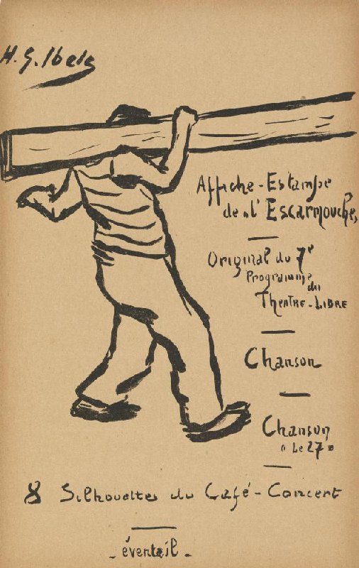 - Affiche-Estampe de l'Escarrmouche Original du 7e Programme du Theatre-Libre Chanson Chanson "Le 27" 8 Silhouettes du Café-Concert _éventail_ by Ibels, Henri Gabriel