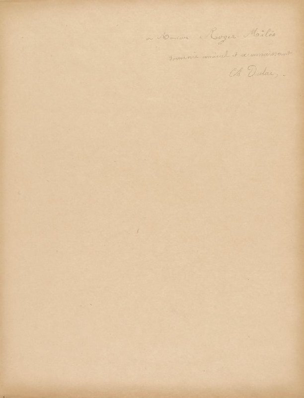 - a Monsieur Roger-Milés Souvenir amical et reconnaissant Ch. Dulac. by Dulac, Charles Marie