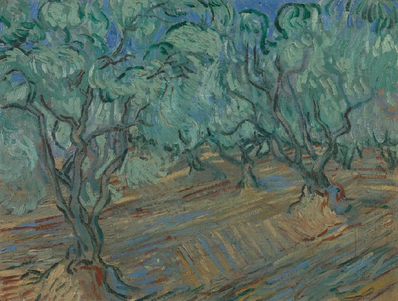 In Saint-Rémy, Van Gogh needed to do little more than step outside the grounds of the clinic to find himself in the middle of an olive grove. He often sat there painting. This is an oil study he made.