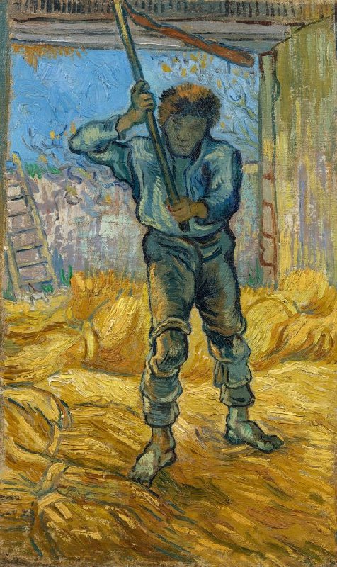 While at the clinic in Saint-Rémy, Van Gogh produced many paintings based on works by other painters. The model for this picture of The Thresher was a wood engraving based on a painting by Jean-François Millet (1814-1875).