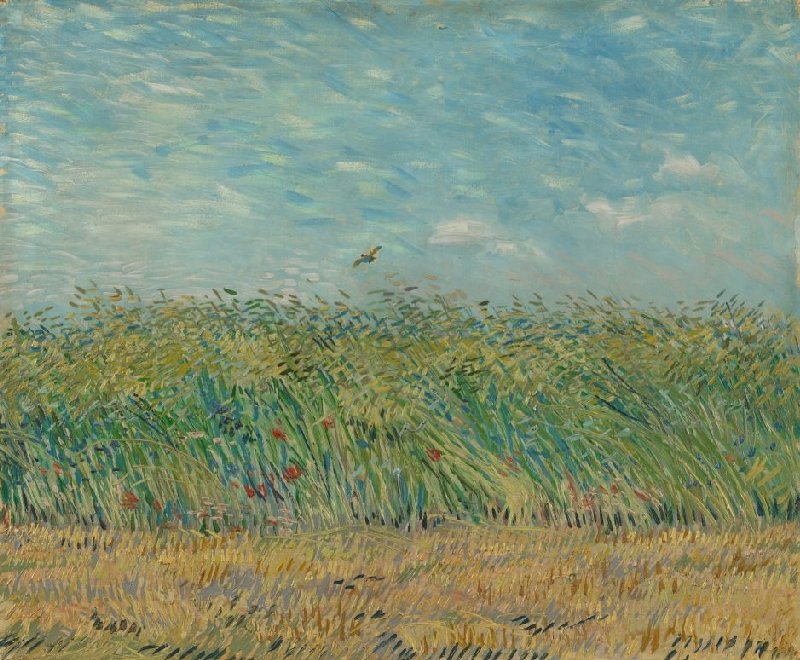 Van Gogh painted this rural wheat field while living in the crowded city of Paris. Before his move to the French capital, his main theme had been country life. For him, this summery painting was a brief return to that theme.