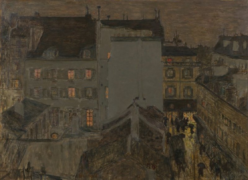 When he painted this townscape, Bonnard took on a double challenge: the light was failing and it was raining. He was looking out of the window of his Montmartre studio at a view he depicted in a number of works.