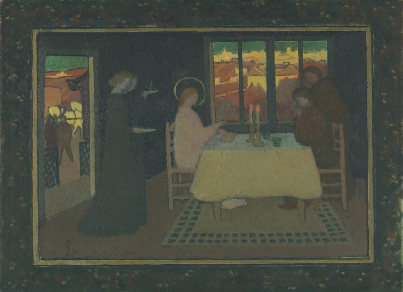 Denis chose a Biblical subject for this painting, but has given it a personal twist. The picture shows Christ sitting at table and breaking bread. Facing him is Denis himself. He is the disciple who has just realised the identity of his extraordinary table companion. Denis’ wife Marthe is entering the room carrying a dish.
