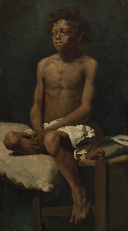 Part of the curriculum included painting from a life model. In one of these classes, Maris painted this striking nude study. The model assumes a relaxed pose, with a cloth in his lap and his hands folded. We do not know who this boy is. He may possibly appear in other drawings and paintings by Academy students of the time.