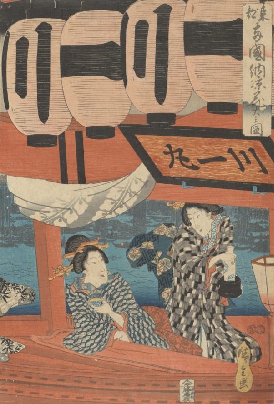 Two Women on a Boat, right sheet of the triptych Evening Cool and Fireworks at Ryōgoku in the Eastern Capital