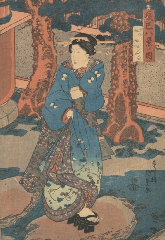 Courtesan Going Out, right sheet of the triptych Seeing off at Nakachō, from the print series Eight Views of Tatsumi