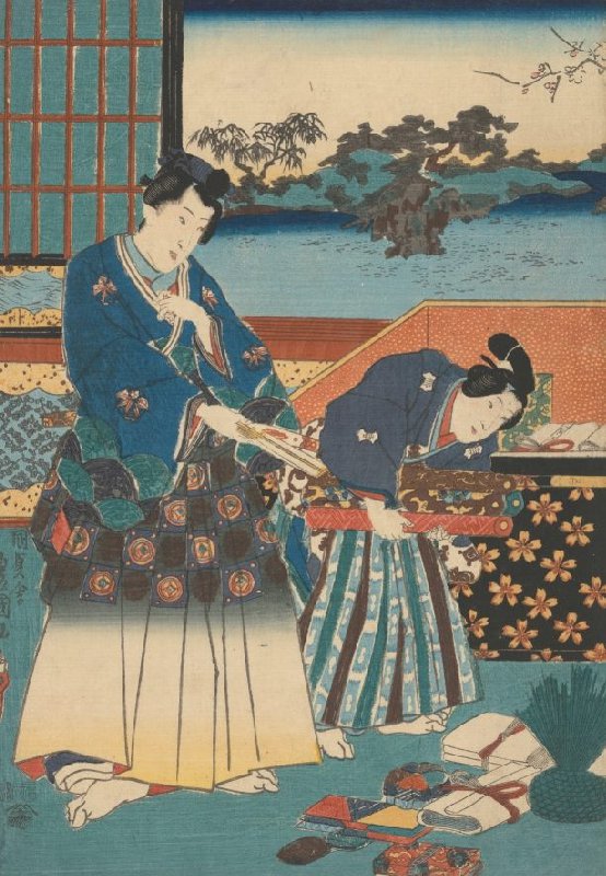 Rustic Genji and Young Attendant, central sheet of the triptych New Year's Fortune at the Residence