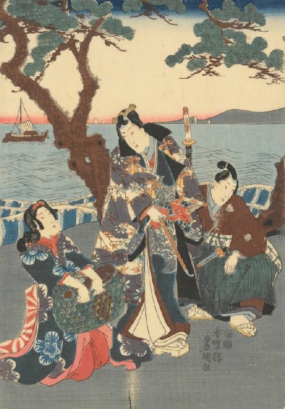 Rustic Genji with Two Attendants, central sheet of the triptych View of the Bay of Akashi