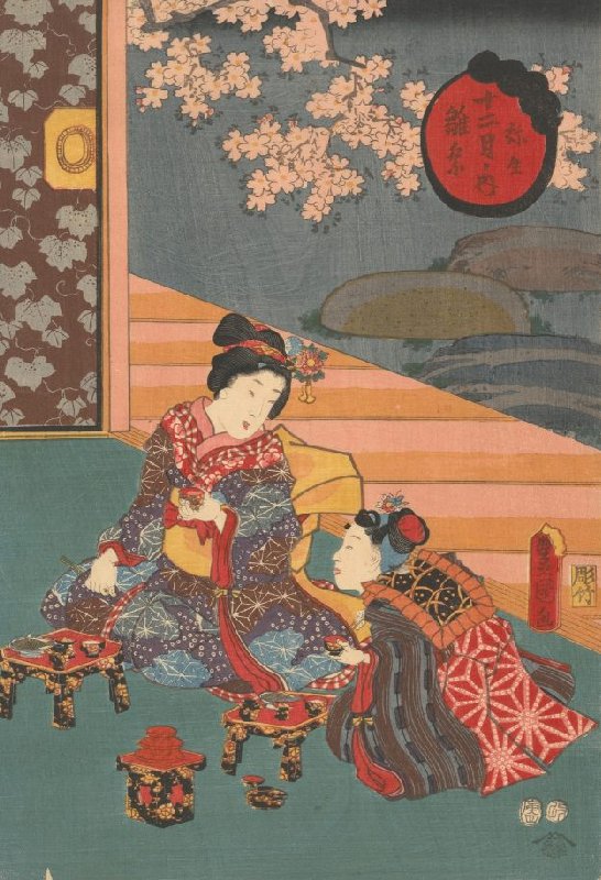 Two Young Girls Holding Cups, right sheet of the triptych The Third Month: Dolls' Festival, from the series The Twelve Months