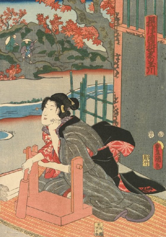 Gazing Woman, right sheet of the triptych Tōi Crystal River in Settsu Province