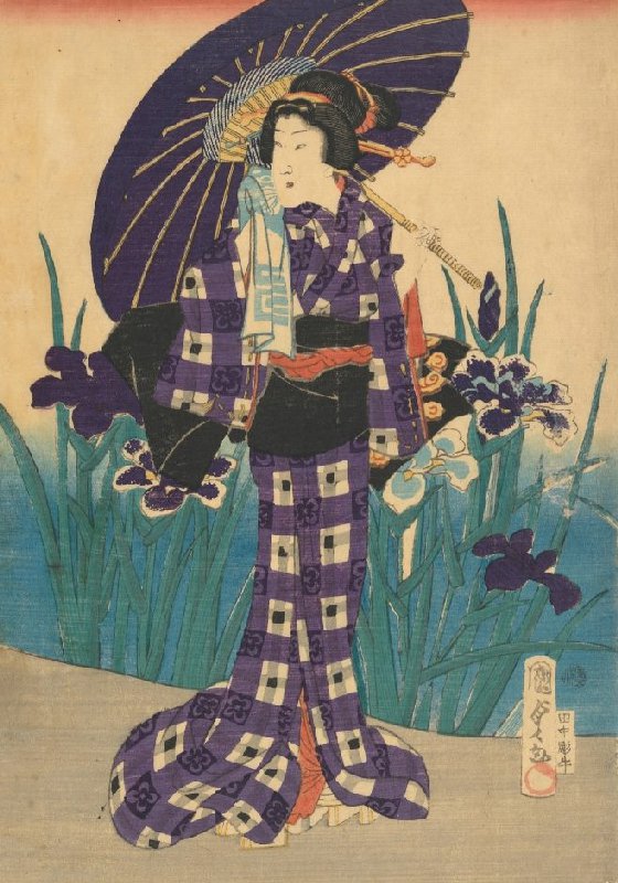 Woman with Umbrella and Cloth, one sheet of the triptych In the Iris Garden