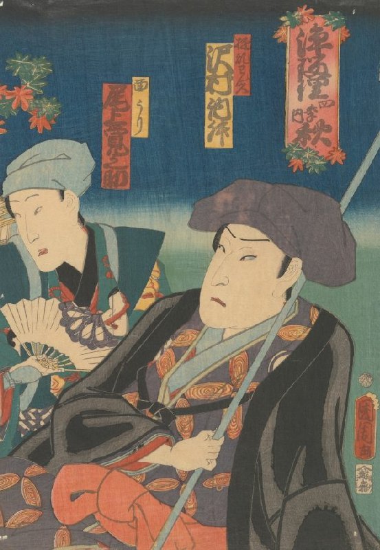 The Actors Sawamura Tosshō in the Role of Horie Wankyū and Onoe Kakunosuke in the Role of Fan-seller ('men'uri'), right sheet of the diptych Autumn, from the series Four Seasons of Jōruri
