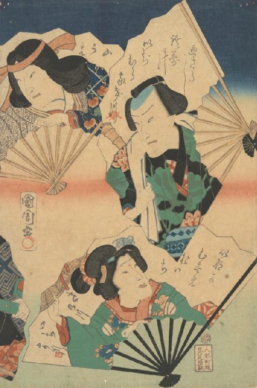 Fans with Kabuki Actor Portraits, central sheet of a pentaptych
