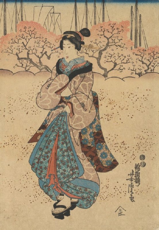 Three Women with Sails and Cherry Blossoms, right sheet of triptych