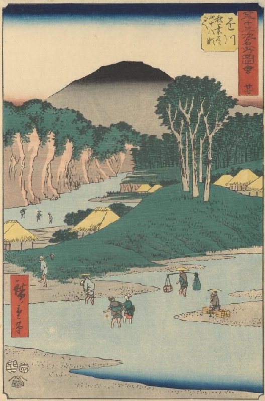 Kakegawa: Wading Through the 48 Fords along the Akiba Road, no. 27 from the series Collection of Illustrations of Famous Places near the Fifty-Three Stations [Along the Tōkaidō]