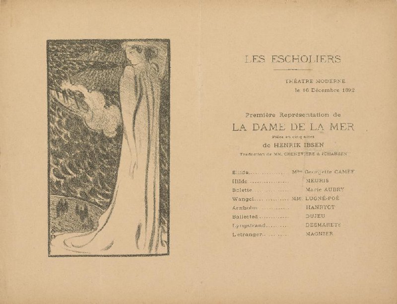 - LES ESCHOLIERS THÉATRE MODERNE le 16 Décembre 1892 Première Représentation de LA DAME DE LA MER Pièce en cinq actes de HENRIK IBSEN [vertaler] [rolverdeling]
