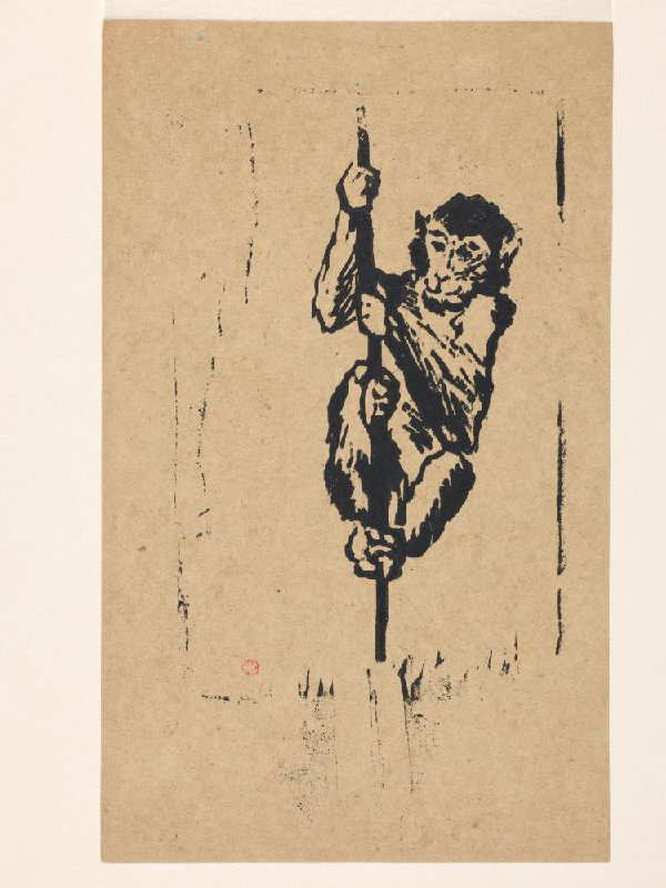 woodcut in black on brown simili Japon, 29.6 cm x 17.9 cm