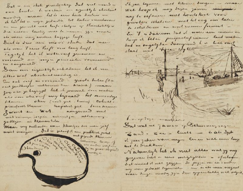 Letter from Vincent van Gogh to Theo van Gogh with sketches of Van Gogh’s Palette and Beach at Scheveningen with Perspective Frame