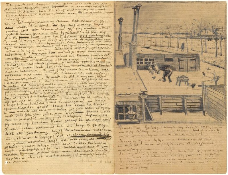 Sheet 1 of a letter from Vincent van Gogh to Theo van Gogh with sketch of Snowy Yard