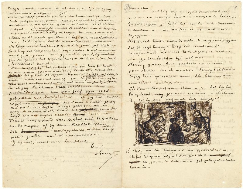 Letter from Vincent van Gogh to Theo van Gogh with sketch of The Potato Eaters (recto)