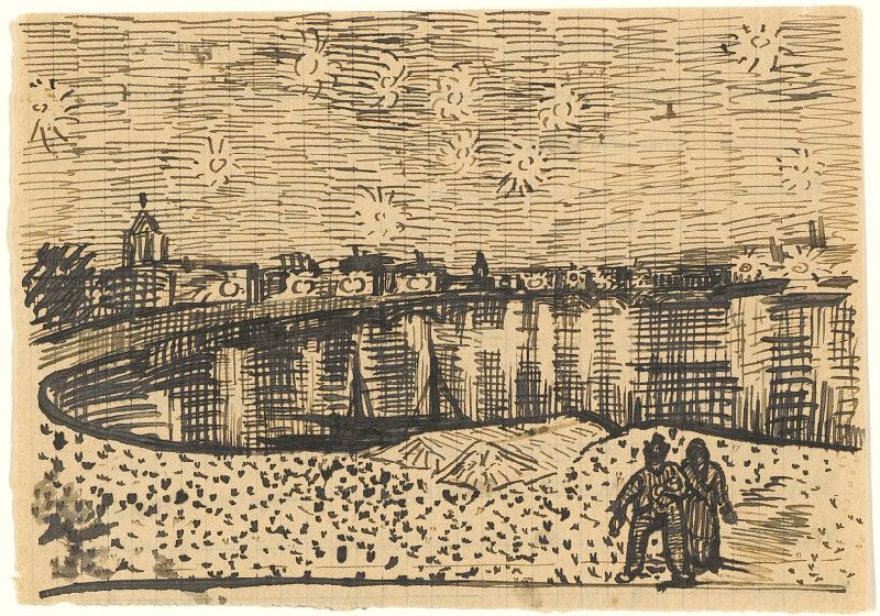 Sketch of Starry Night Over the Rhône, enclosed in a letter from Vincent van Gogh to Eugène Boch (recto)