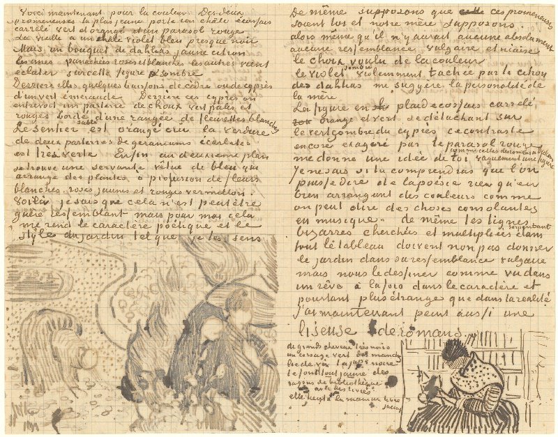 Letter From Vincent van Gogh to Willemien van Gogh with sketch of Woman Reading a Novel (verso)
