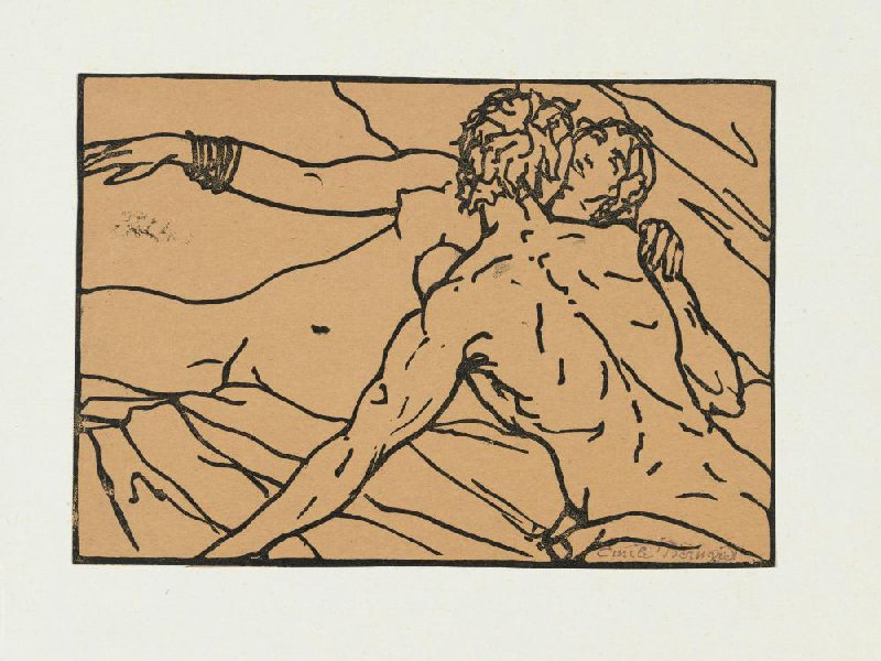 woodcut in black on brown wove paper on wove paper, 29.6 cm x 40.1 cm